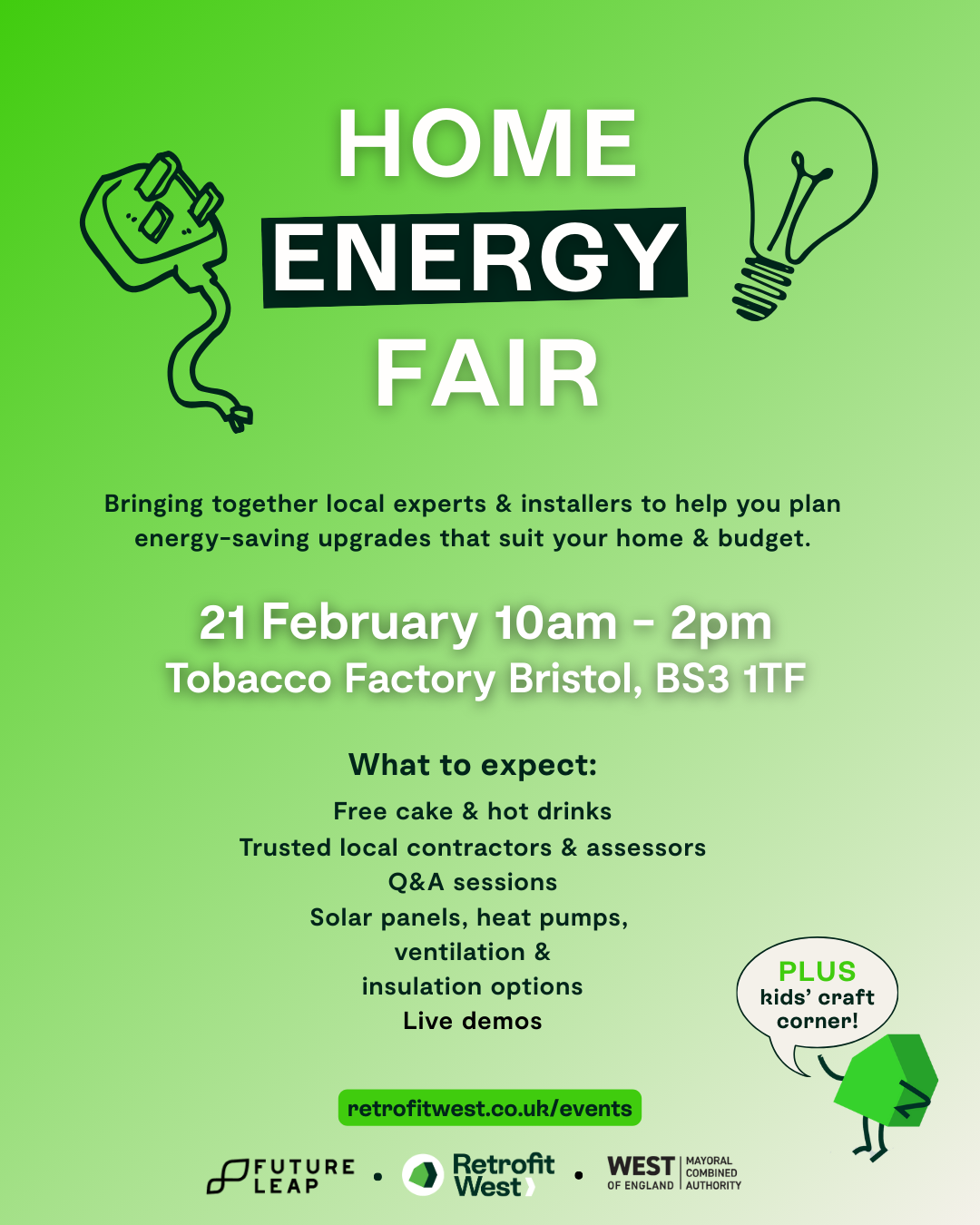 This FREE event is packed with expert advice on improvements from damp & draughts, to renewable technology, helping you get started on lowering your energy bills and finding a great local installer to complete your project! Plus there’s plenty to do in our kids’ corner – bring the whole family along for free cake, drinks and activities.