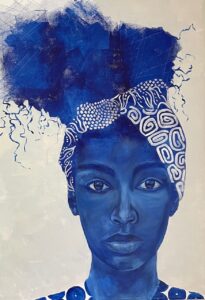 Her portraits blend realism with abstraction, with figures emerging from rich, moody backgrounds. Using bold brushstrokes, drips, and textured layers, Rachael captures quiet yet powerful expressions that reflect inner thought and emotional complexity. Abstract forms often surround her subjects, suggesting memory, experience, and personal growth.
